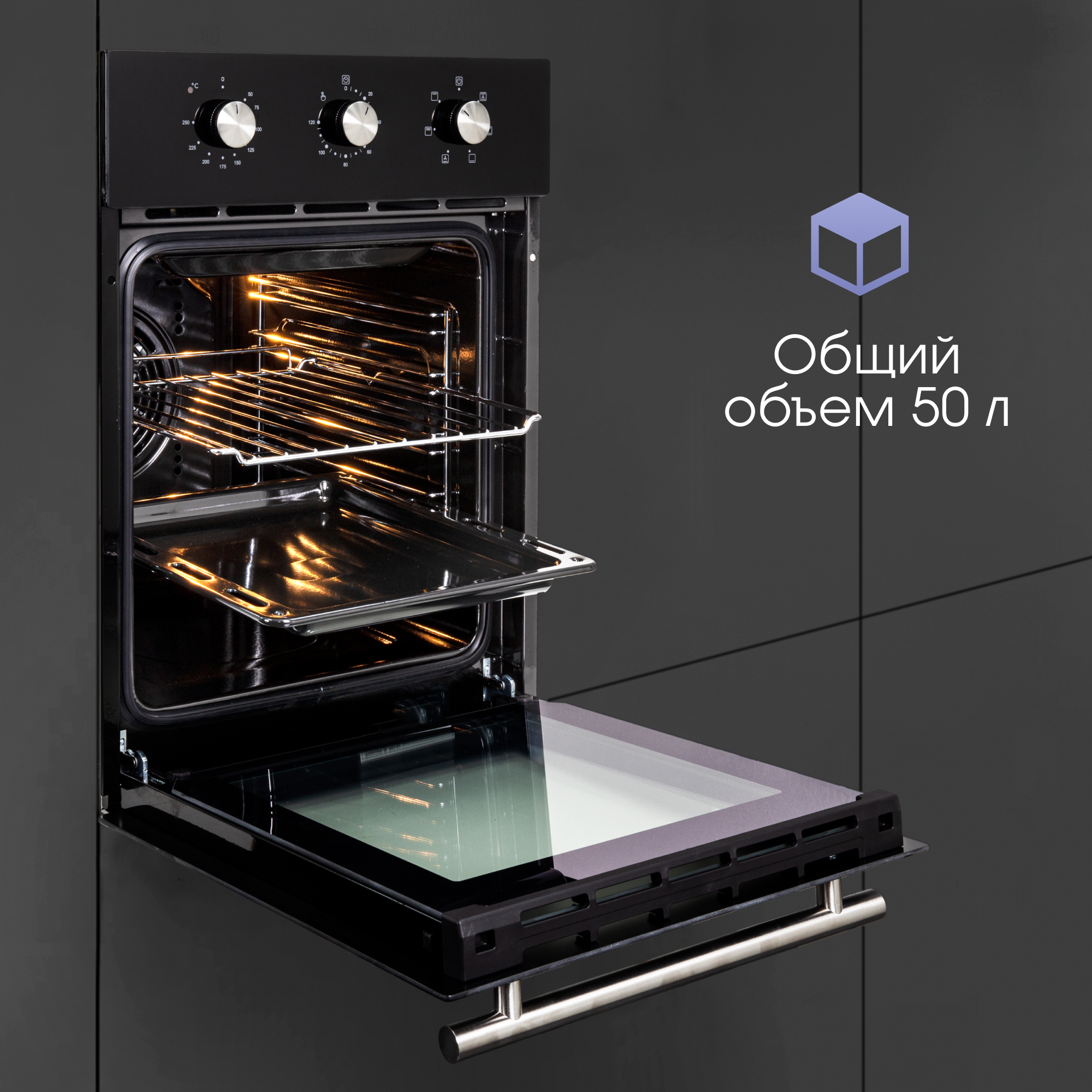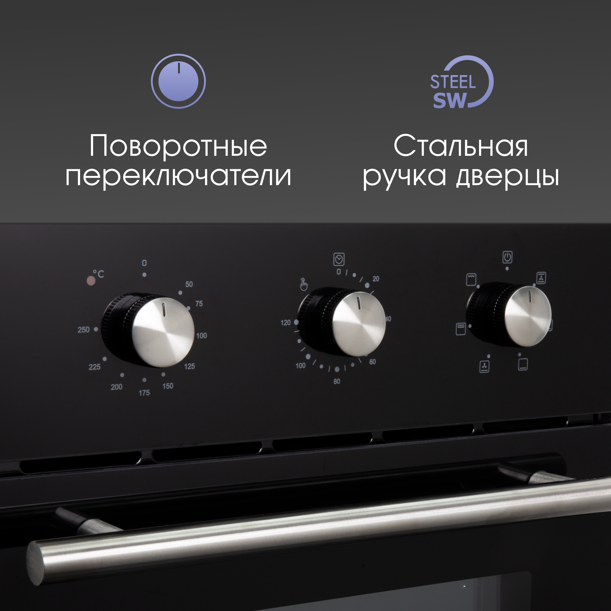 Духовой шкаф оснащен электромеханическим управлением, что обеспечивает надежность и долговечность. Отсутствие утаплив