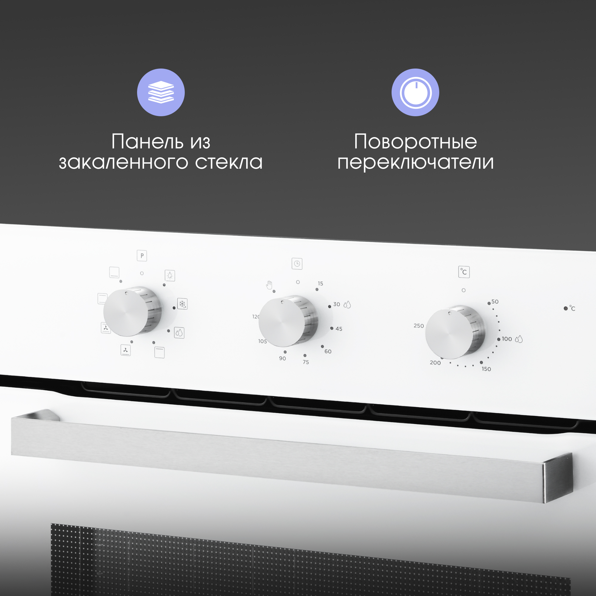 Удобное управление с помощью поворотных переключателей со ступенчатой регулировкой пламени. Эргономичные ручки не нагреваются.