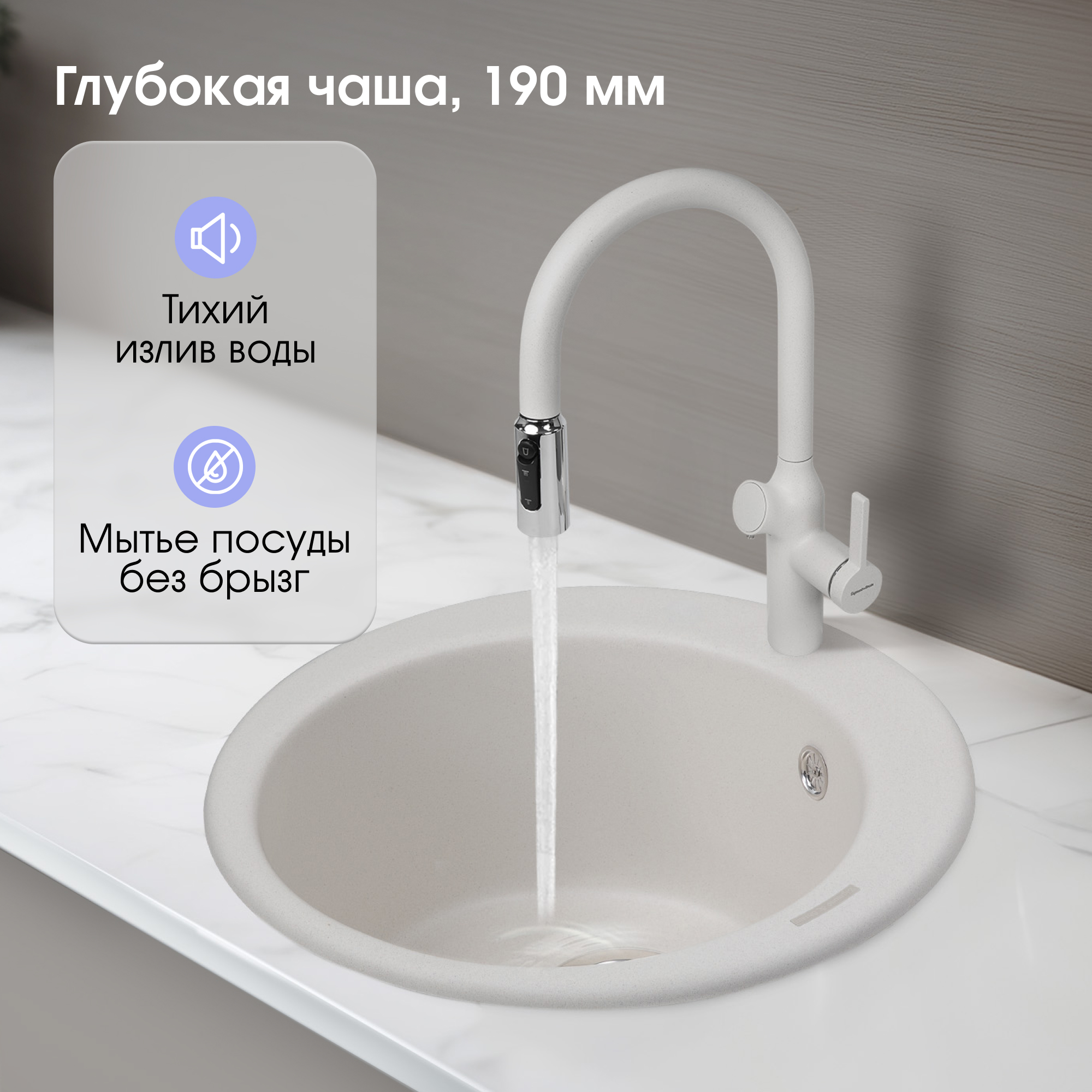 Модель KREIS 480 — отличное решение для небольших кухонь. Круглая форма прекрасно впишется в любой интерьер. При небольших внешних габаритах, мойка обладает глубокой чашей в 19 см, которая позволяет вымыть большую кастрюлю, или пару сковородок разом. Можно не волноваться за плотность прилегания мойки к столешнице, входящая в комплект крепежная арматура Hettich обеспечит надёжное крепление к поверхности, на протяжении всего срока службы. Мойка выполнена из натурального материала, и является полностью безвредной для здоровья.