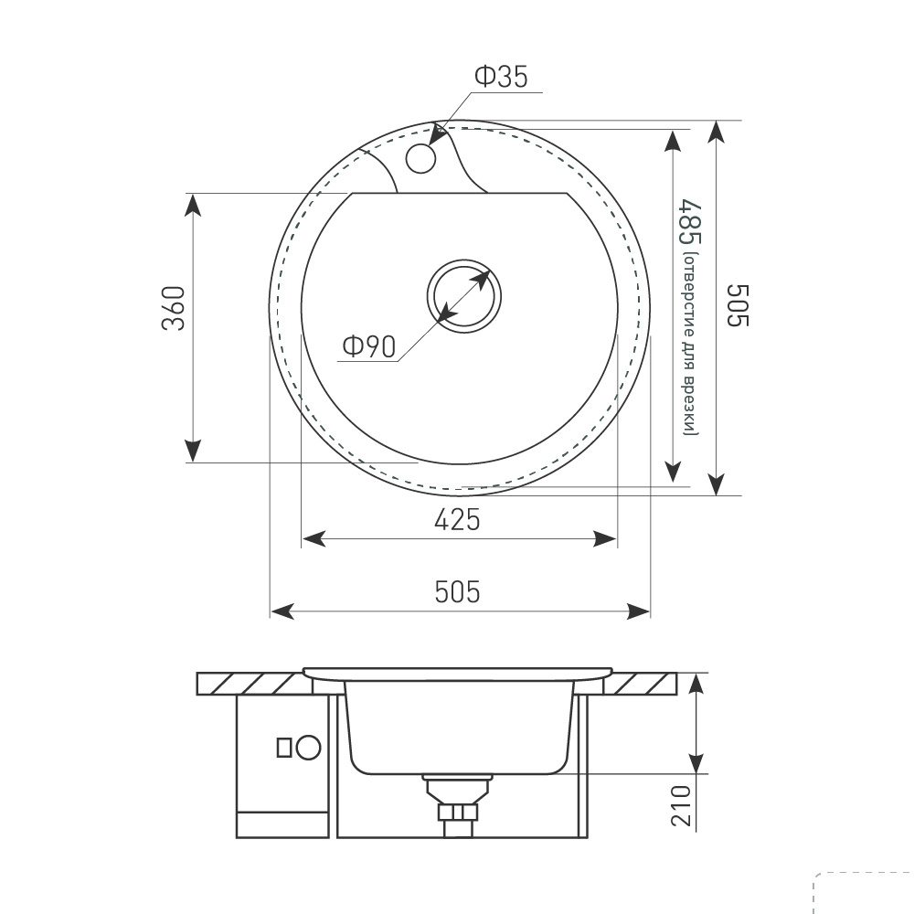 Сочетание высокого качества гранитной мойки KREIS 505F с компактными размерами и глубокой чашей для мытья посуды наделяет её достаточно широкими возможностями. Разработанная специально для небольших кухонь, компактная мойка правильной круглой формы прекрасно впишется в любой кухонный интерьер. Несмотря на минимальные внешние размеры мойки в целом, внутренняя чаша является весьма вместительной, так как её глубина составляет 21 см. Такой объём раковины позволяет без труда вымыть стандартный набор посуды после семейного ужина.