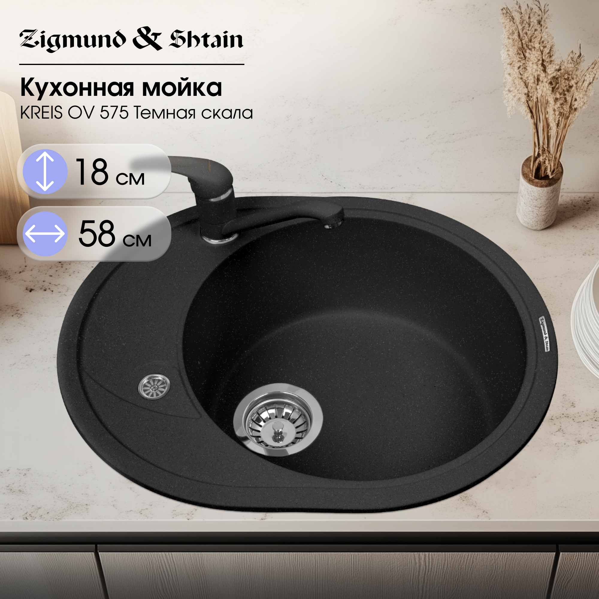 Кухонная мойка Zigmund & Shtain KREIS OV 575 ТЕМН.СКАЛА