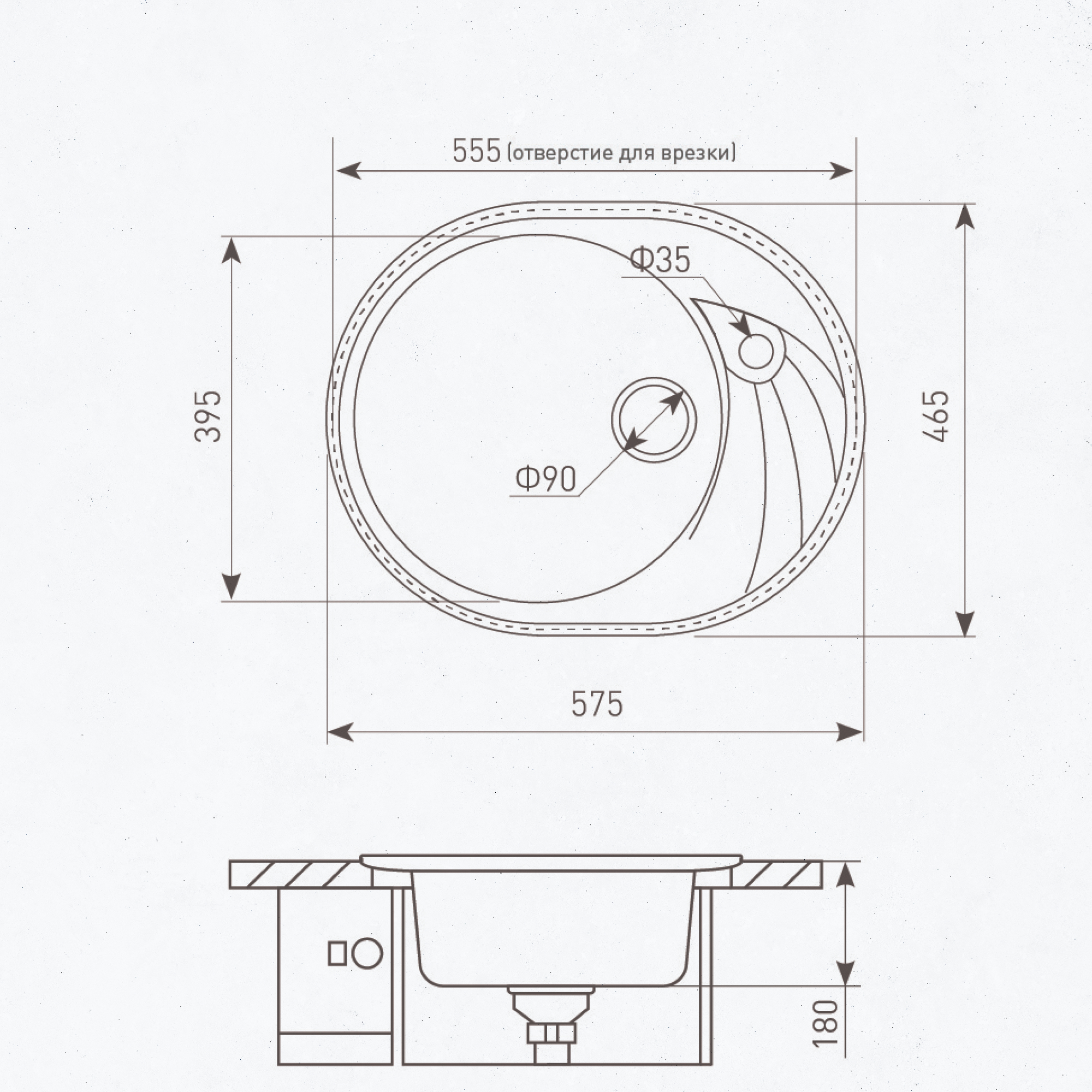 Овальная форма гранитной мойки KREIS OV 575 не оставит равнодушным человека стремящегося к комфорту. Впрочем. также как и дополнительное оснащение гранитным крылом, которое можно повернуть как вправо, так и влево, на выбор пользователя. Это дает неоспоримое удобство при определении места и позиции расположения мойки на кухне. Если с одной стороны стена, холодильник или любое другое препятствие, можно повернуть её в противоположную от него сторону. В крыле мойки предусмотрен слив, который дает возможность сушить на его поверхности мелкую посуду, или столовые приборы. Для дополнительного удобства отверстия под смеситель намечены с двух сторон мойки (снизу и сверху). Крепежная арматура немецкого завода Hettich поставляемая в комплекте с мойкой, обеспечит надежное крепление к столешнице на протяжении всего срока службы изделия.
