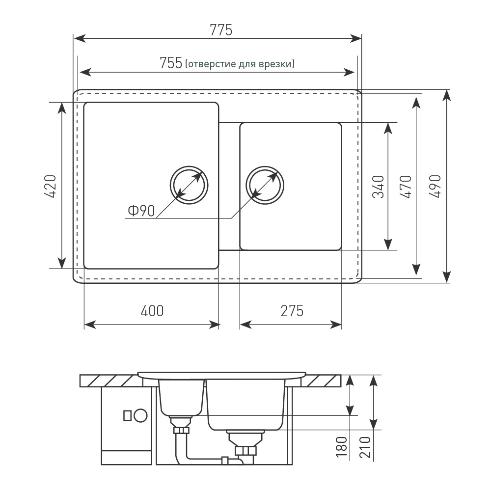 Модель RECHTECK 400.275 — эта двухчашевая эргономичная мойка имеет габаритные размеры 775*490 мм. и устанавливается на шкаф 70 см. Параметры большой чаши составляют 420*400 мм., тогда как малой 275*340 мм. Вторая чаша – это своего рода дополнительный рабочий инструмент на кухне. В ней можно мыть отдельно овощи и фрукты, размораживать мясо, складывать чистую посуду или поставить емкость, куда удобно складывать продукты, нарезанные на разделочной доске, которую можно расположить тут же, на крыле мойки. Такая модель займет меньше места, чем двухчашевая с крылом, но по своему функционалу ни в чем ей не уступает. Ее поверхность устойчива к механическим повреждениям, воздействию ультрафиолета, щелочей и кислот. Материал обладает всеми необходимыми гигиеническими свойствами. Он совершенно безопасен с точки зрения экологии и в течение длительного времени не теряет своих первоначальных эксплуатационных качеств.
