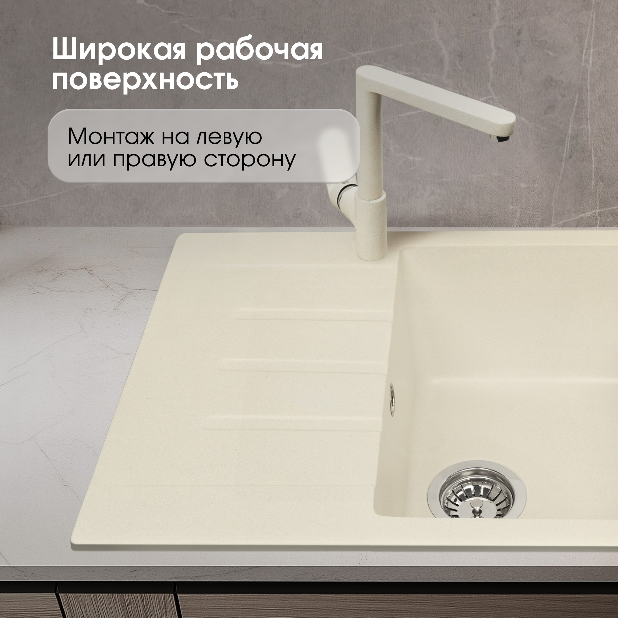 Крылатая модель RECHTECK 645 значительно расширяет возможности пользователя благодаря своей конструкции. Квадратная чаша в прямоугольном обрамлении, геометрически гармонично сочетается со столешницей и прекрасно дополняет ее. Мойка выполнена из натурального гранита, который обладает поистине безграничными возможностями при эксплуатации. На крыле мойки можно оставить размораживаться мясо, курицу, рыбу, овощи или фрукты. В том числе, конечно же, можно сушить посуду, или вымытые продукты безо всякого вреда для поверхности мойки, в силу особых свойств гранитного камня. По своей прочности композитный гранит не только не уступает каменной столешнице, но и во многом превосходит ее. Он безопасен для продуктов питания, не боится высоких температур, механических ударов, или царапин.