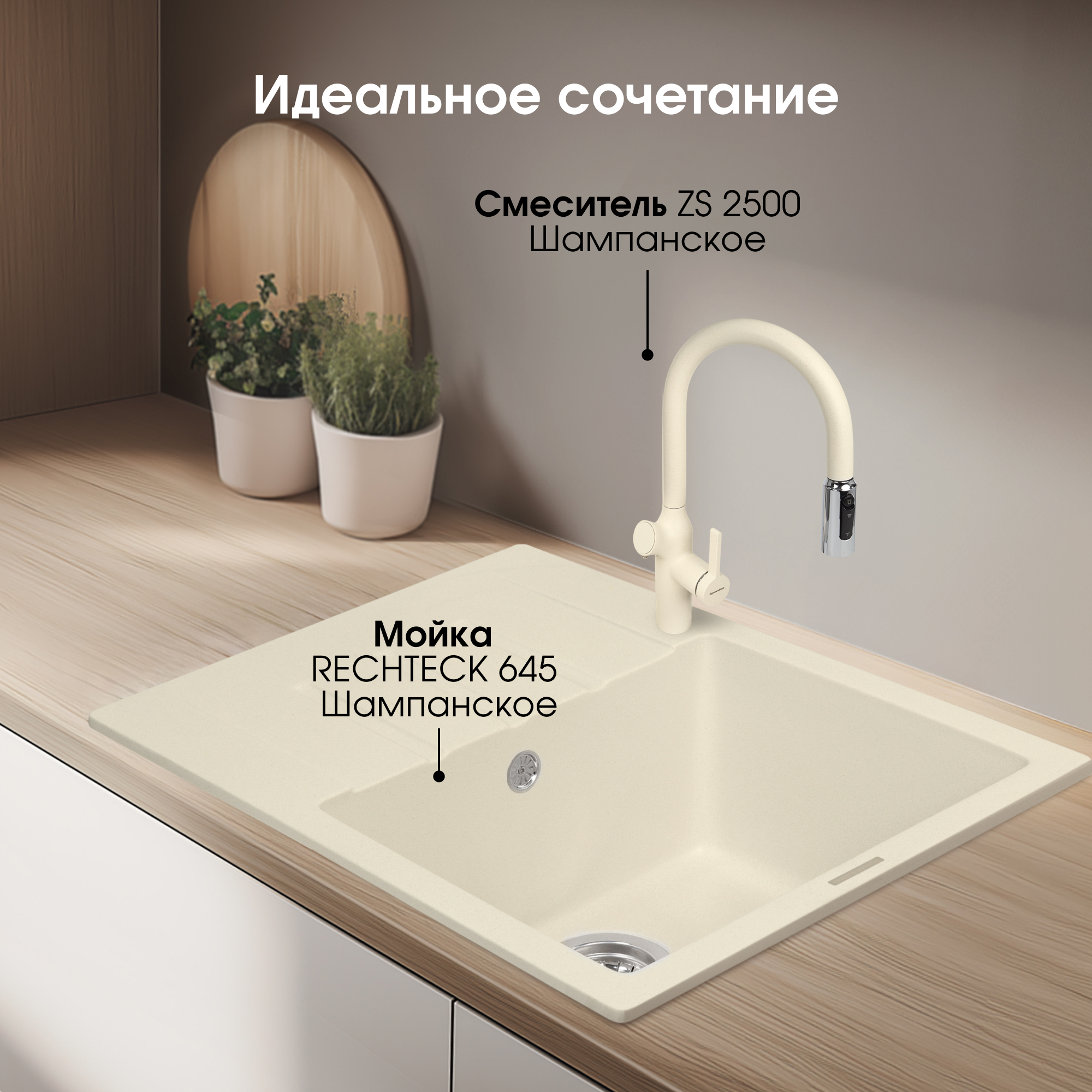 Кухонная мойка Zigmund & Shtain RECHTECK 645 МОЛОД.ШАМП