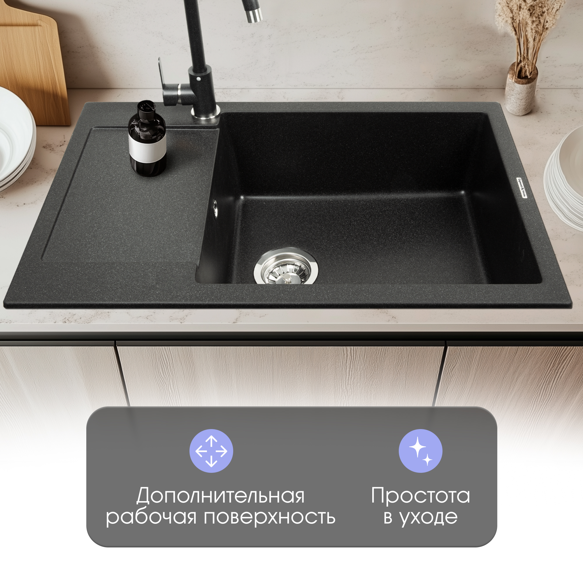 Кухонная мойка Zigmund & Shtain RECHTECK 780.490 ТЕМН.СКАЛА
