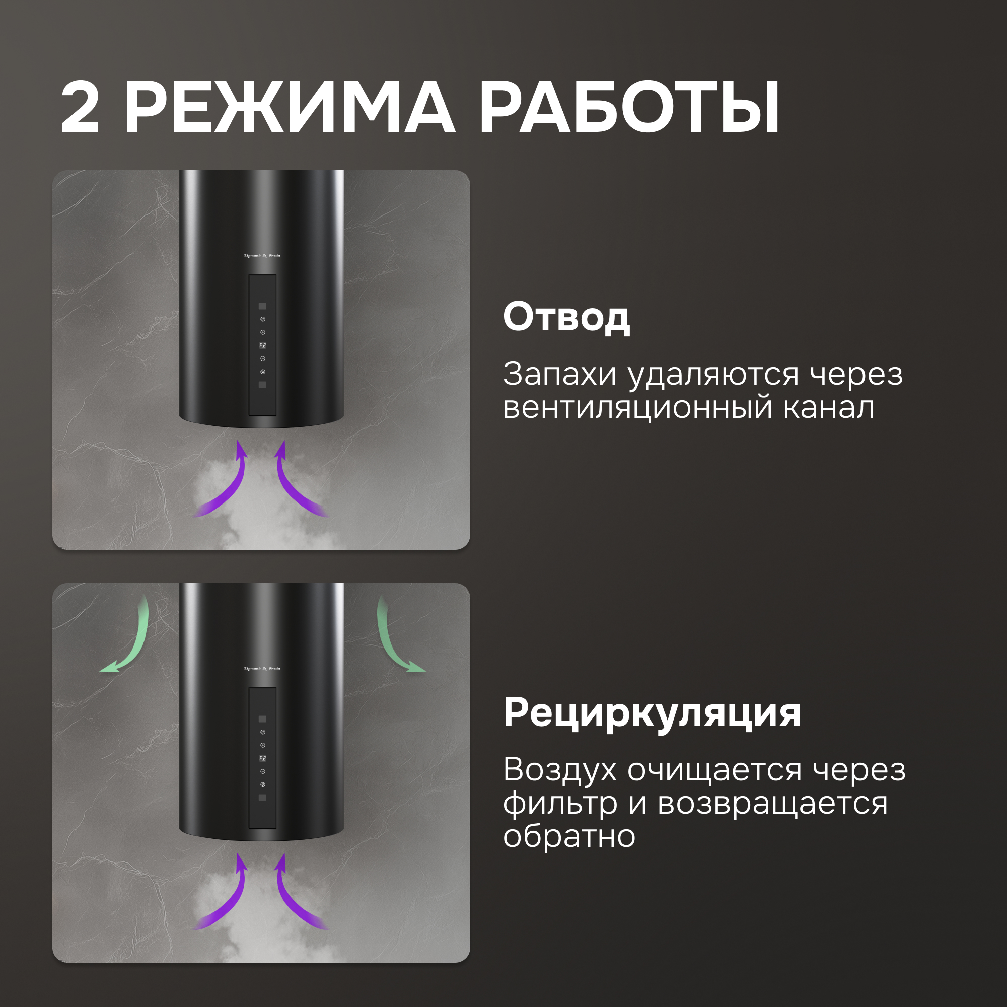 ● Работает как в режиме отвода, так и рециркуляции в зависимости от ваших потребностей.