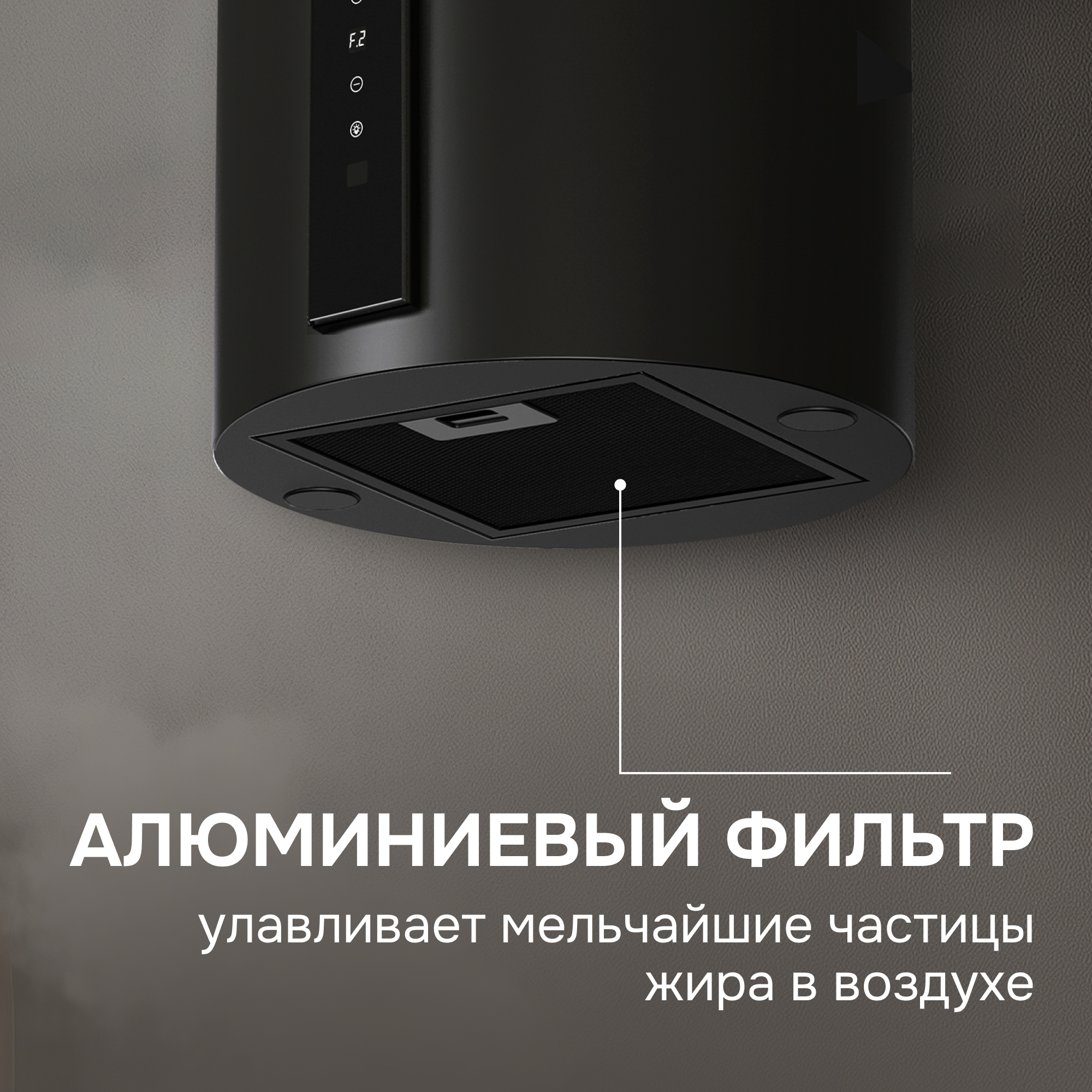 ● Настроить скорость работы вытяжки можно с помощью удобно расположенного и интуитивно понятного сенсорного управления. Возможность управления жестами дольше сохранит панель управления чистой и позволит контролировать уровень очищения воздуха, даже если руки заняты приготовлением.