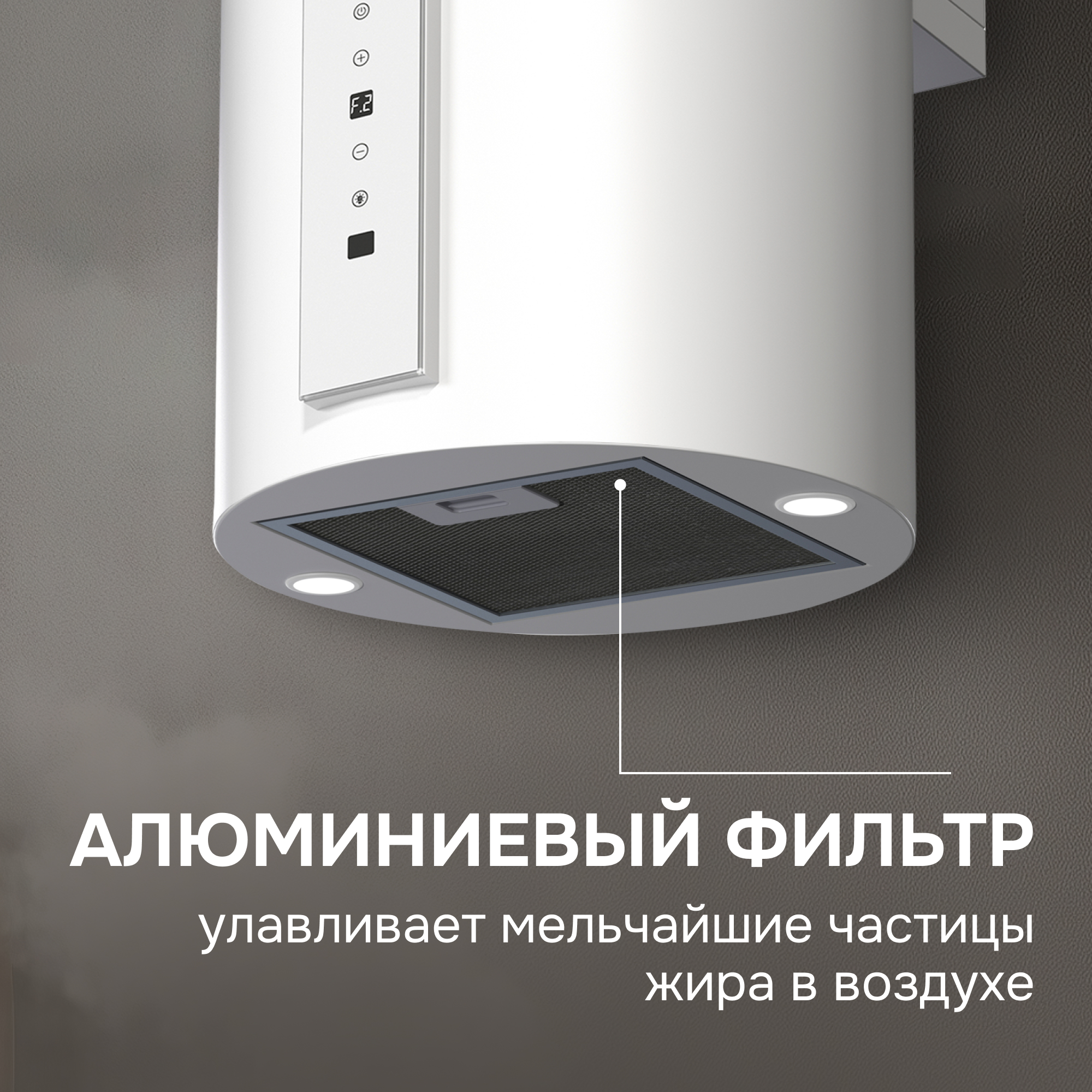 ● Настроить скорость работы вытяжки можно с помощью удобно расположенного и интуитивно понятного сенсорного управления. Возможность управления жестами дольше сохранит панель управления чистой и позволит контролировать уровень очищения воздуха, даже если руки заняты приготовлением.