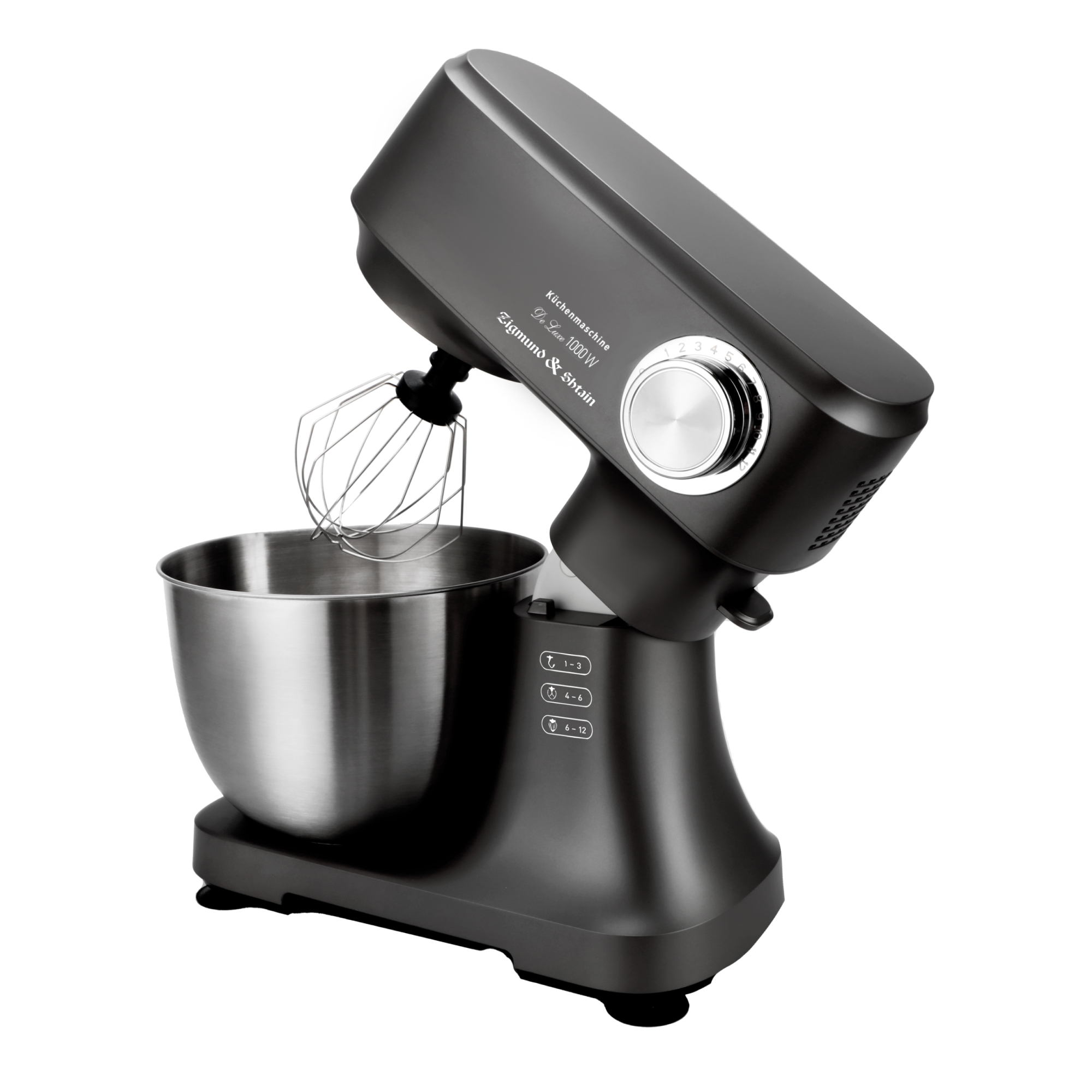 Кухонная машина De Luxe ZKM-951 от компании Zigmund & Shtain – это многофункциональный прибор нового поколения, который максимально облегчает и выводит на профессиональный уровень приготовление кулинарной выпечки. De Luxe ZKM-951 представляет собой планетарный миксер с тремя съемными насадками для замешивания теста, взбивания крема и жидких смесей, а также для смешивания ингредиентов.