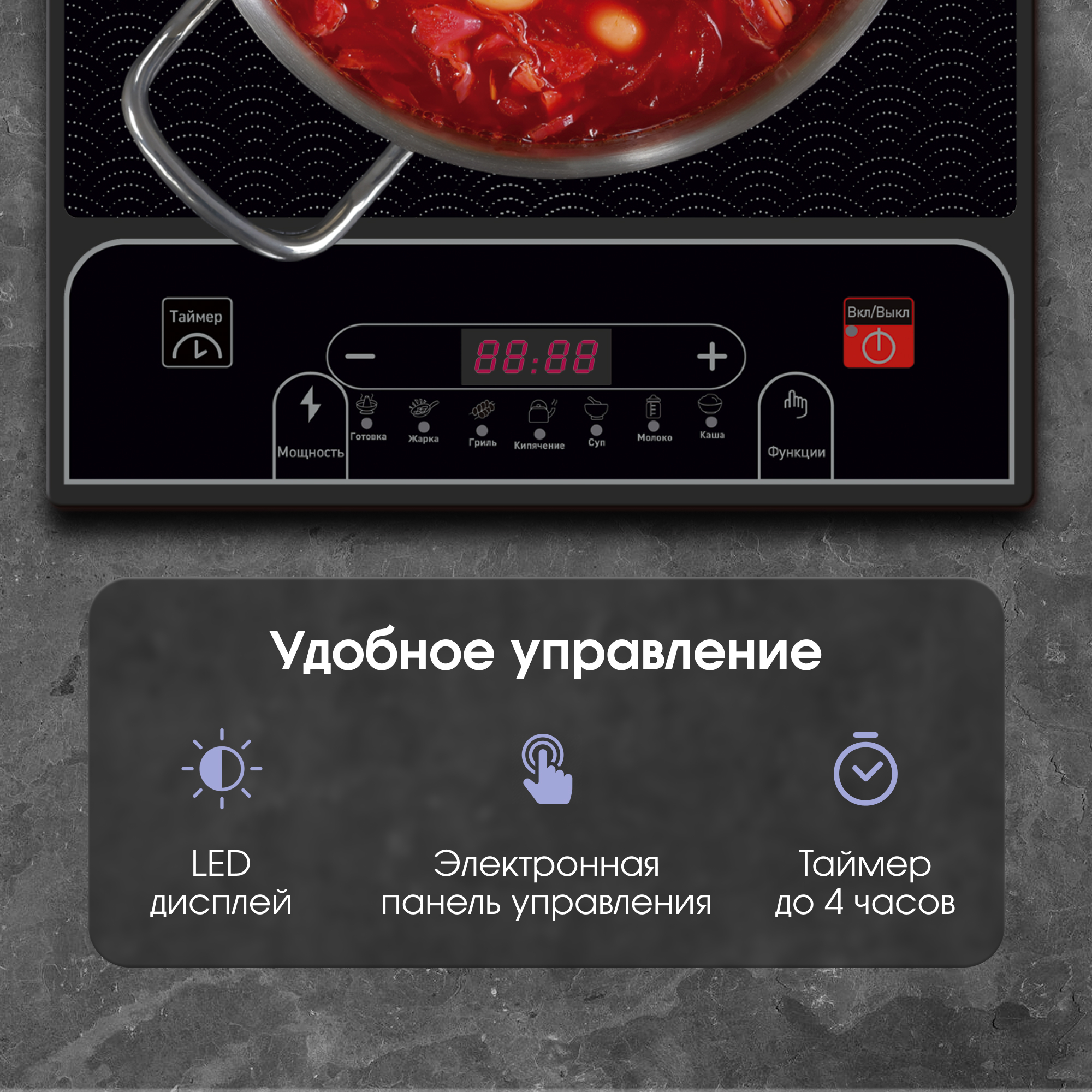 · Таймер приготовления до 4 часов для автоматического контроля над процессом п