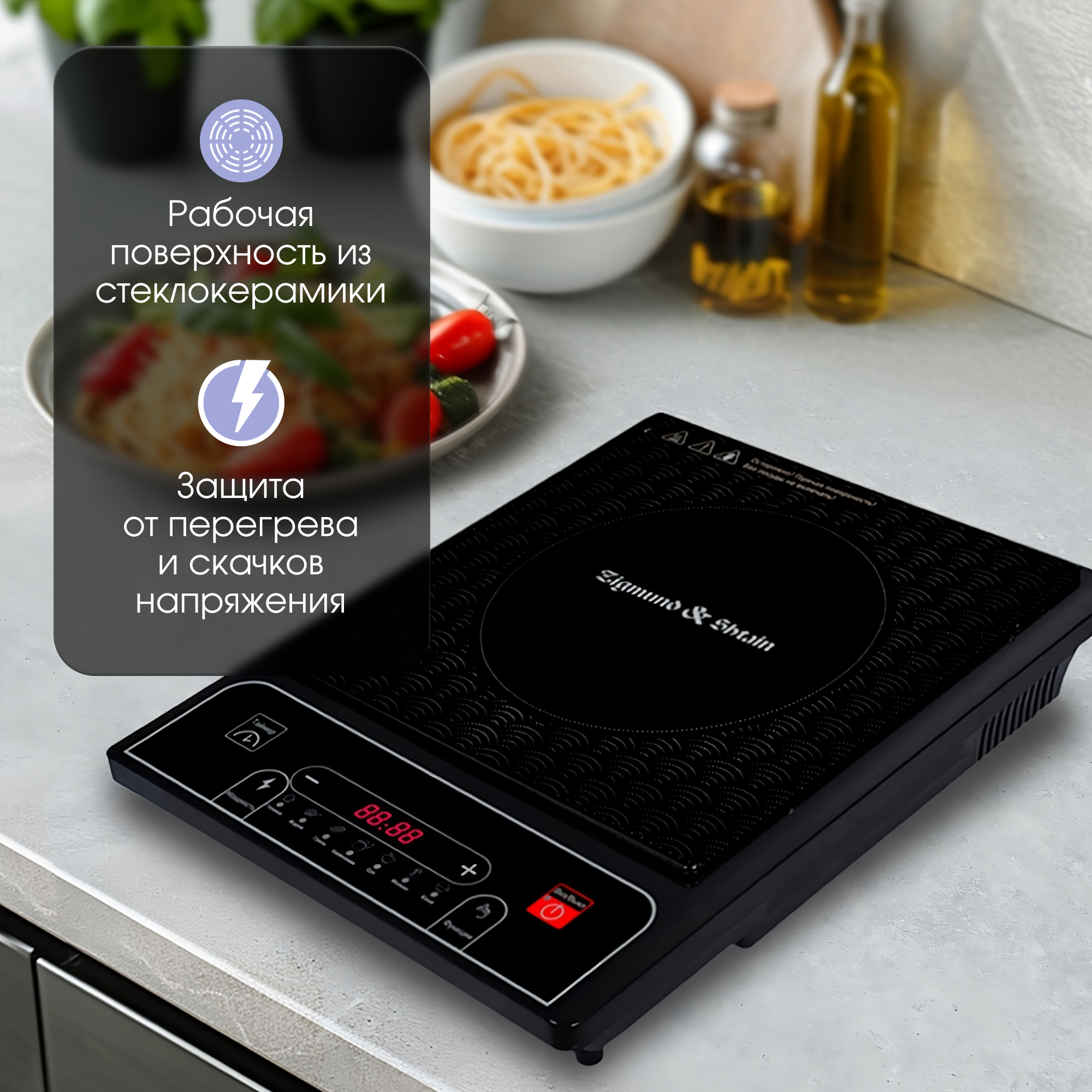 · Быстрый нагрев благодаря направленному потоку тепла строго к днищу посуды без дополнительного расхода энергии. КПД данной модели в 2-3 раза больше, чем у традиционной электроплиты.