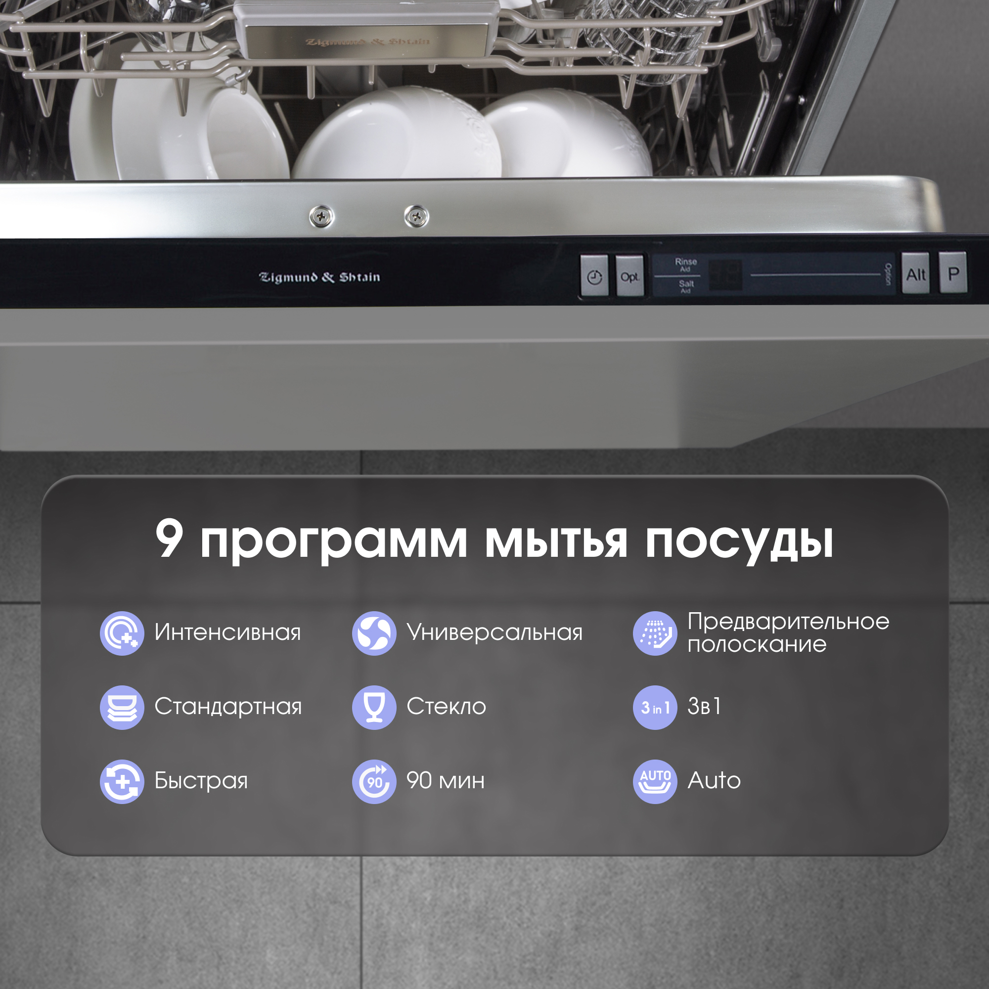 3 в 1, авто, интенсивная, обычная, экономичная, стекло, 90 минут, быстрая, замачивание