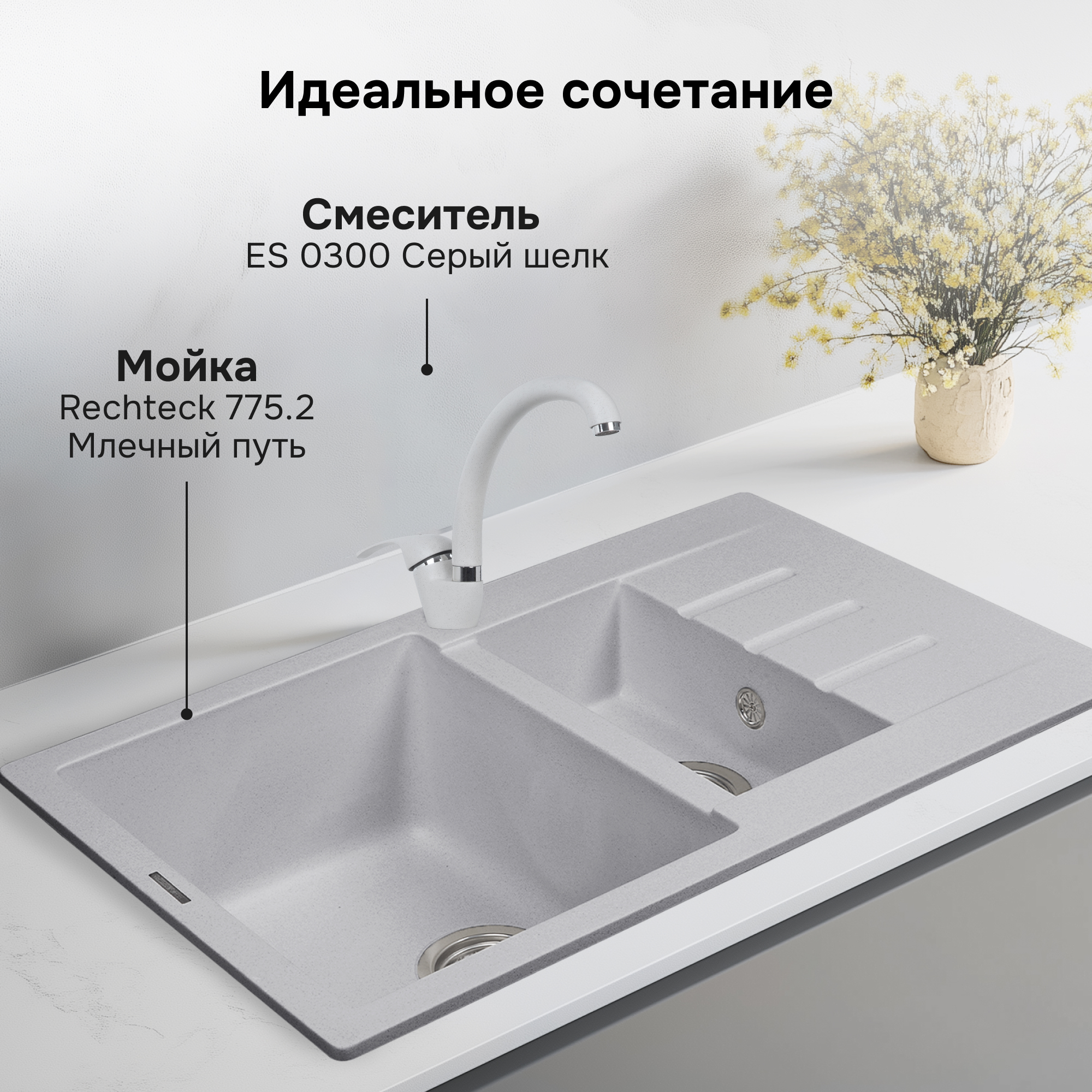 Смеситель Ecoshtein ES 0300 серый шелк