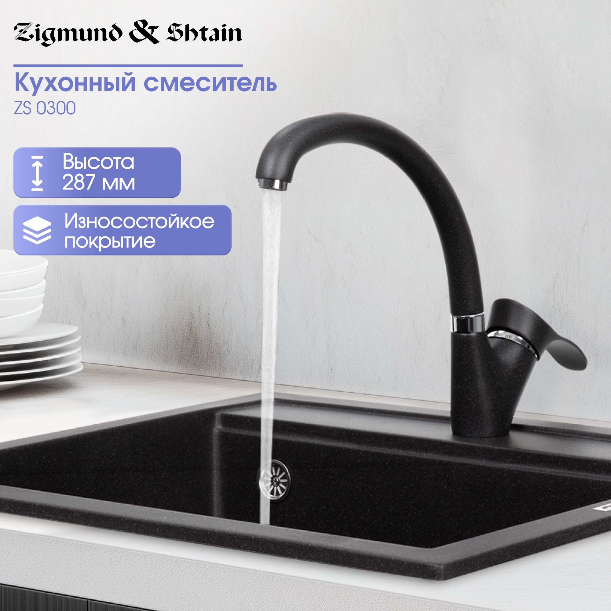 Смеситель Zigmund & Shtain 0300 смеситель ZS ТЕМН.СКАЛА