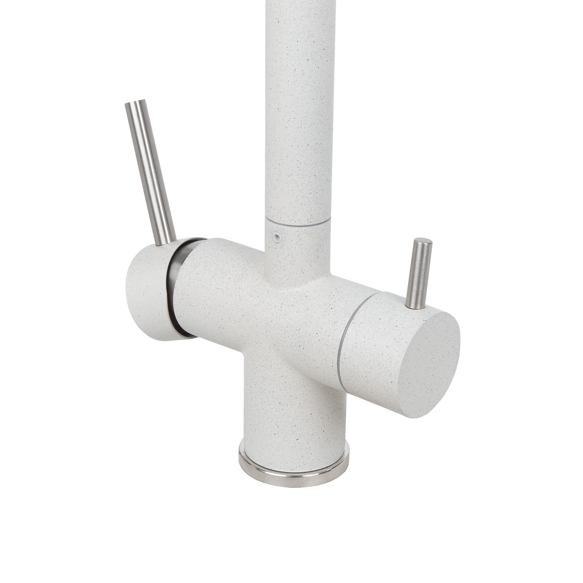 Одноизливный – фильтрованная и водопроводная вода подаются через один аэратор. Это позволяет не нарушая общего вида смесителя, получать очищенную и водопроводную воду через одно устройство.