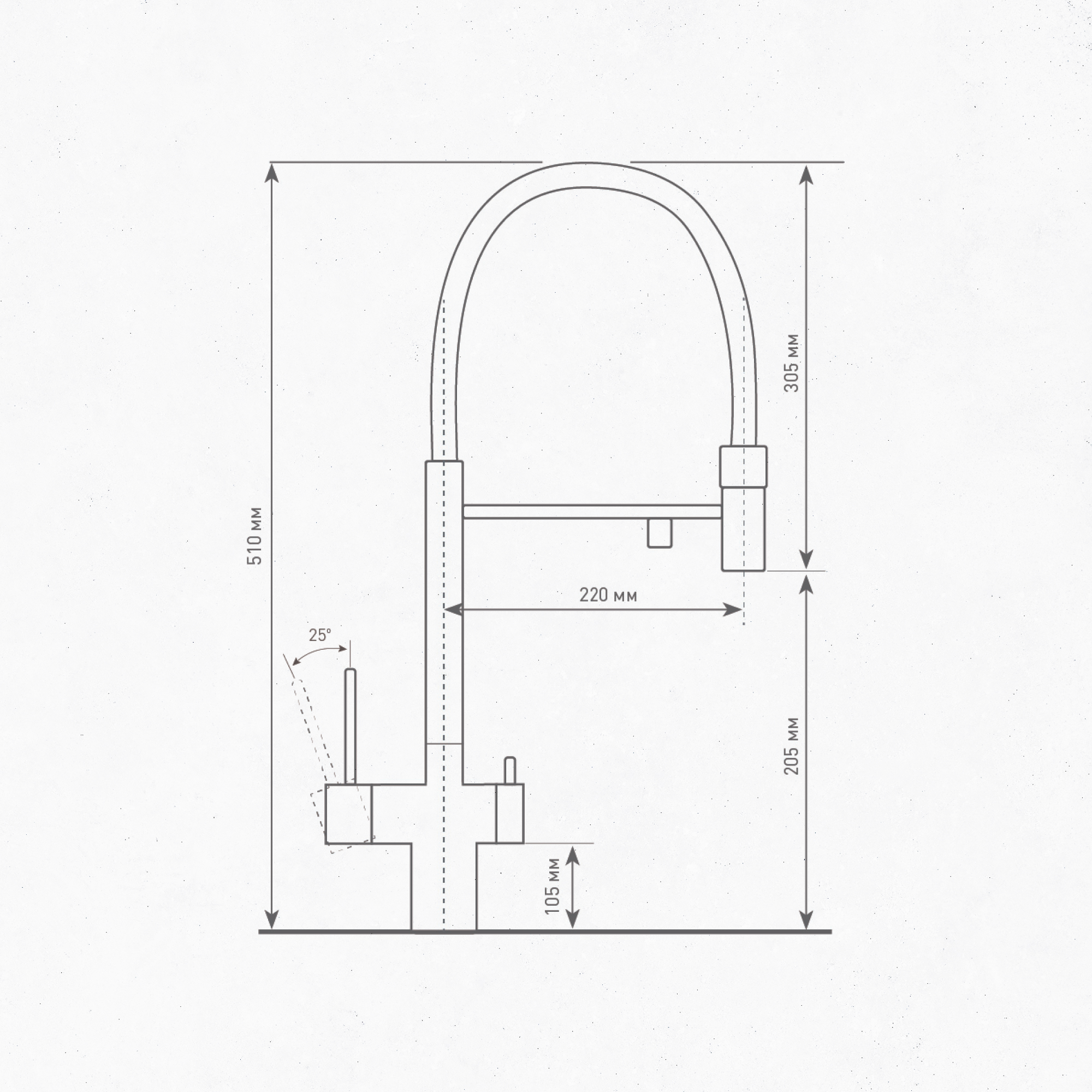 Гибкий излив смесителя выполнен из армированного ПВХ и имеет длину 100 см.