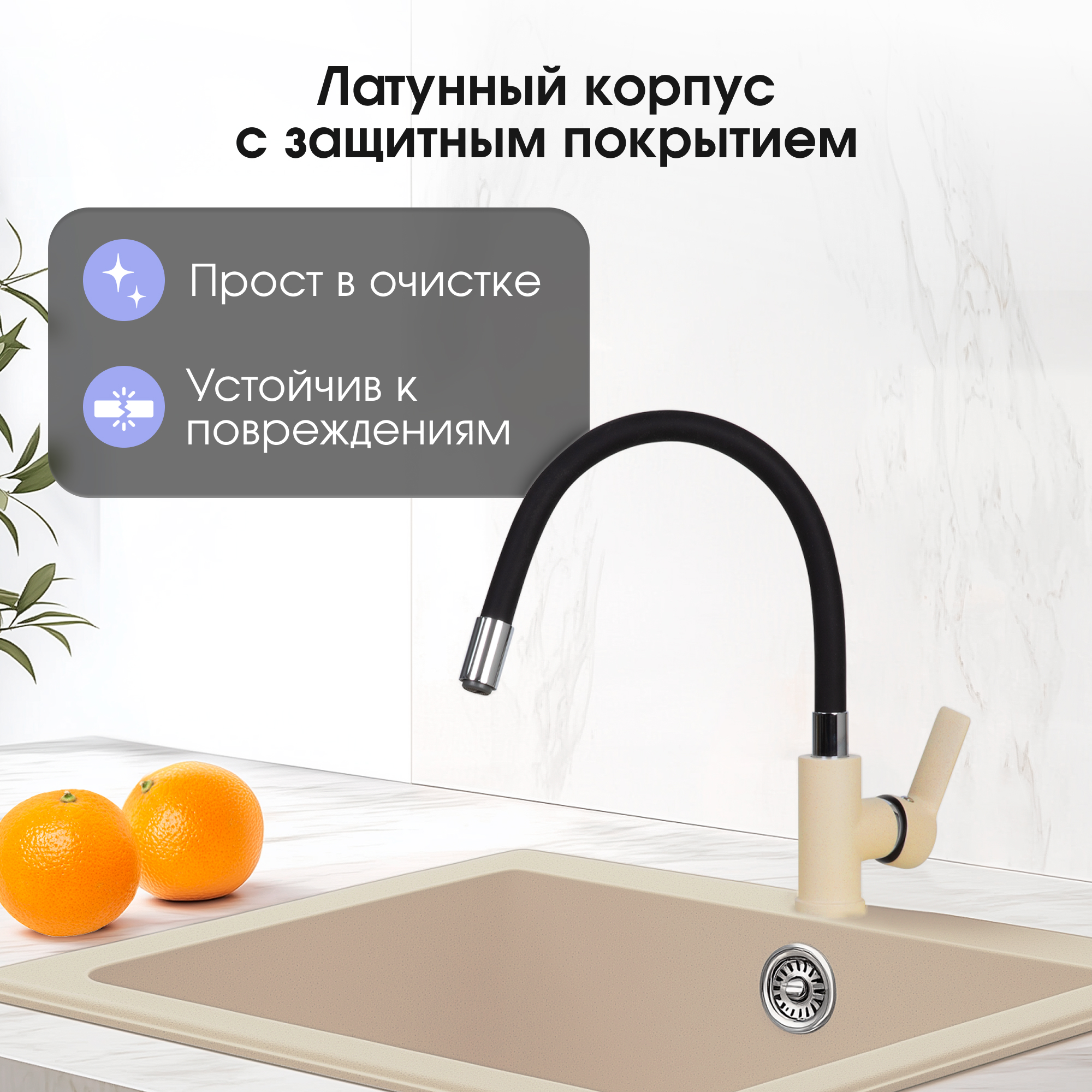 •Гибкая подводка — в комплекте