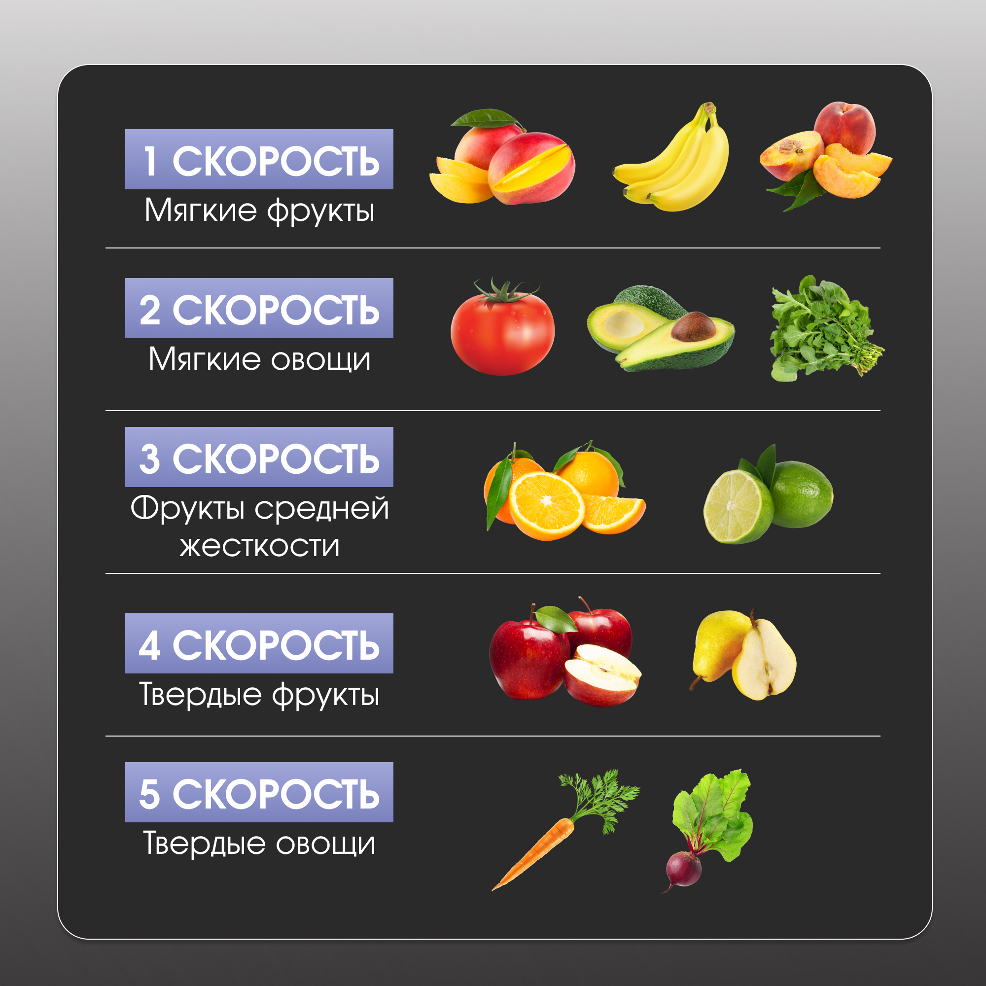 Большая мощность и высокая скорость вращения позволяют максимально эффективно выжимать сок практически из всех видов овощей и фруктов. При этом она проста в использовании, тихо работает, быстро разбирается, легко моется.