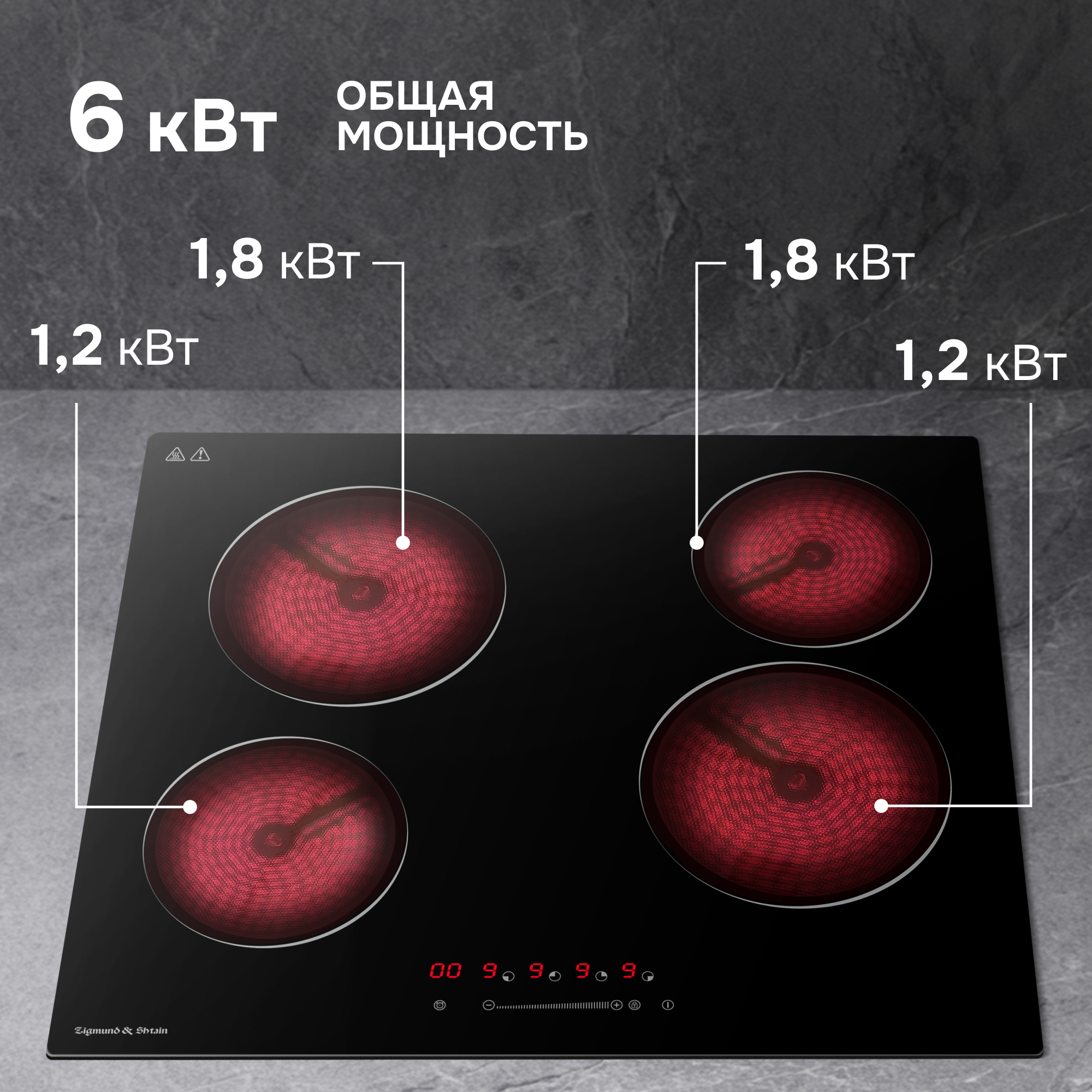 Электрическая варочная панель Zigmund & Shtain 42.6 B — сочетание многофункциональности, стиля и европейского качества. Благодаря современному интерфейсу и минималистичному дизайну встраиваемая техника удобна и проста в использовании. Дополнительный автоматический контроль за процессом приготовления позаботится о безопасности в доме.