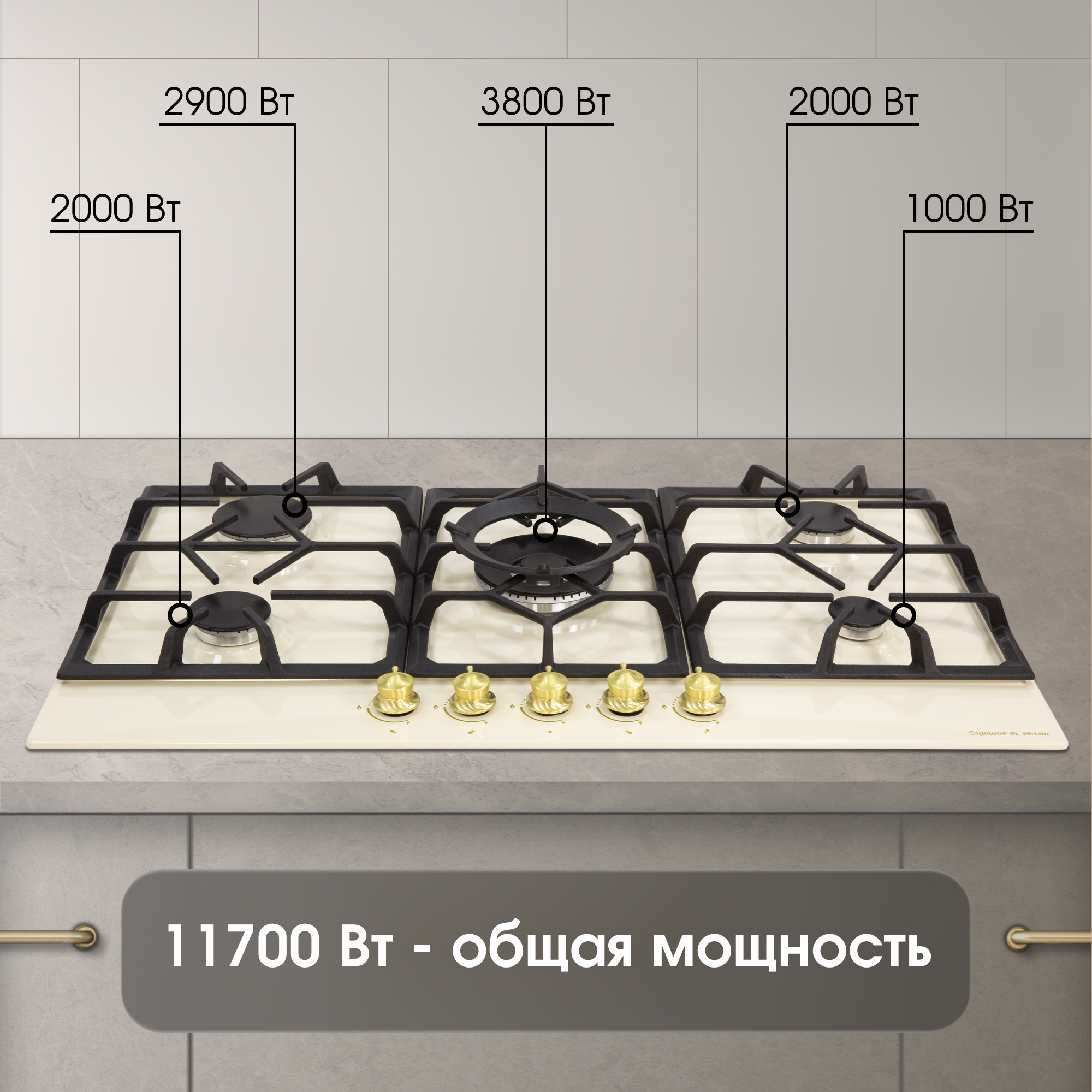 Мощность горелок: 4,2 квт +2.9 квт + 2*2 квт +1 квт